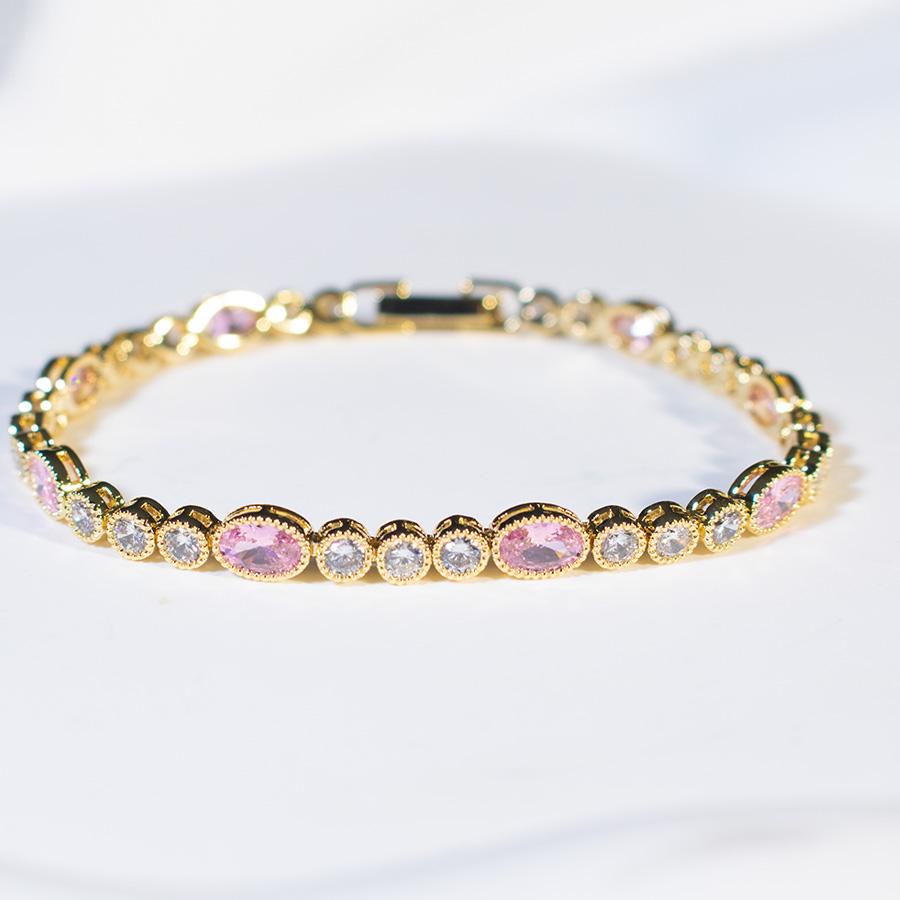 Высококачественный розовый белый AAA циркон 14K позолоченный темперамент теннисный браслет модные женские ювелирные изделия подарок ювелирные изделия для невест