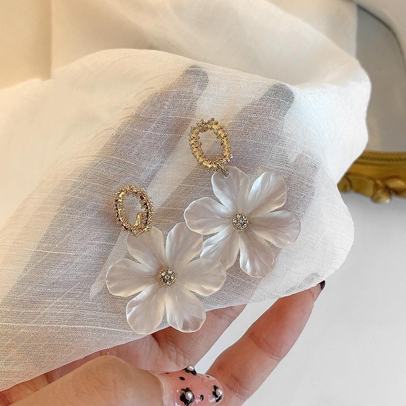 Прозрачные белые цветочные подвесные серьги-лепестки, милые простые серьги для пляжного отдыха, украшение для ушей для женщин