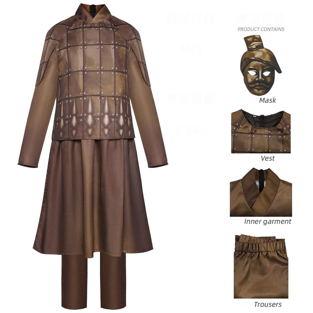 Терракотовые воины и лошади Косплей Костюм Цинь Ши Хуан Древняя армия Одежда для ролевых игр Жилет Брюки с маской Хэллоуинская вечеринка