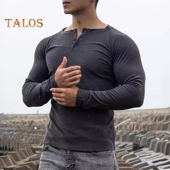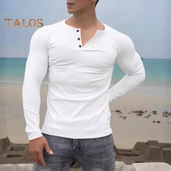 Этот мужской топ изготовлен из смеси полиэфирного волокна и спандекса, представляющей собой высокоэластичную ткань, которая подчеркивает ваш силуэт, обеспечивая при этом мягкость и воздухопроницаемость.. Эта классическая рубашка с круглым вырезом, отделкой пуговицами, однотонными длинными рукавами и облегающим кроем воплощает простоту и модный стиль..