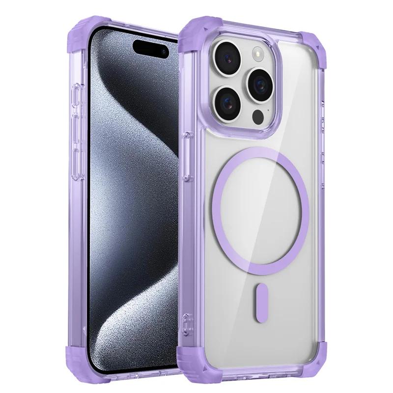 Магнитный прозрачный бронированный чехол Magsafe для Apple IPhone 16 Pro Max 15 14 13 Plus с беспроводной зарядкой и полной защитой, прозрачный цветной чехол