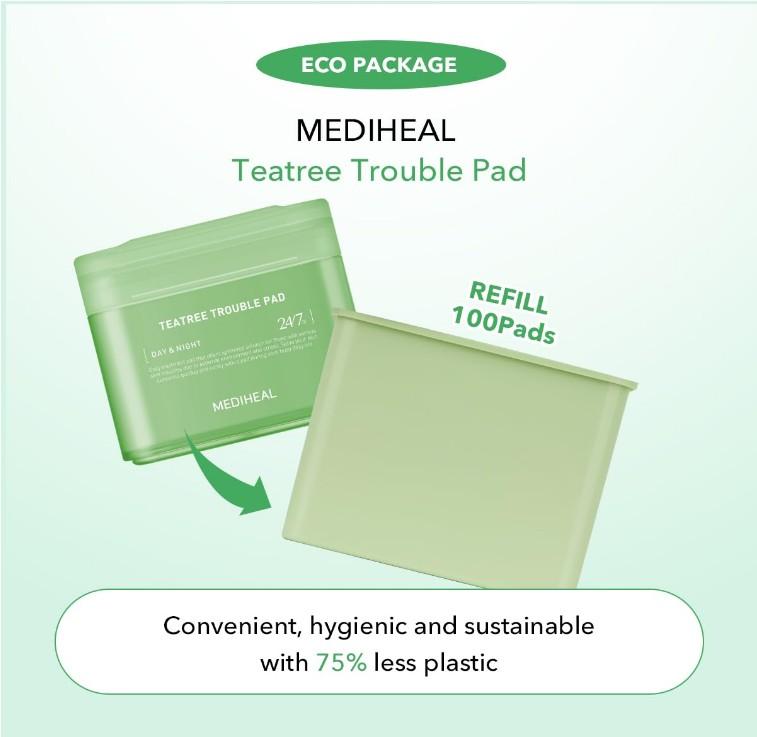 ОБОГАЩЕН НАТУРАЛЬНЫМИ ИНГРЕДИЕНТАМИ: Mediheal Teatree Trouble Pad содержит успокаивающий биом чайного дерева с технологией на основе липосом.; Наши безворсовые ватные диски с тонером чайного дерева укрепляют кожный барьер и успокаивают раздраженную кожу, сохраняя ее мягкой, увлажненной и напитанной в течение всего дня.