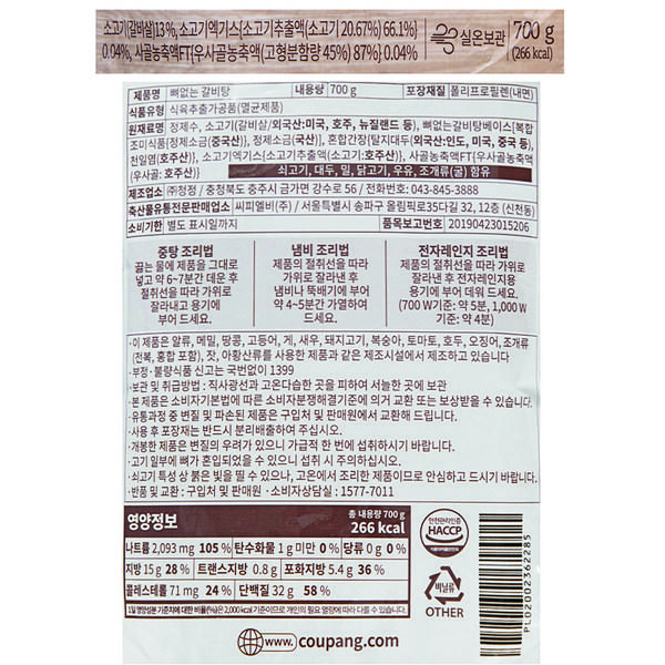 Boneless rib soup, 700g, 4 pieces, Korean convenience food