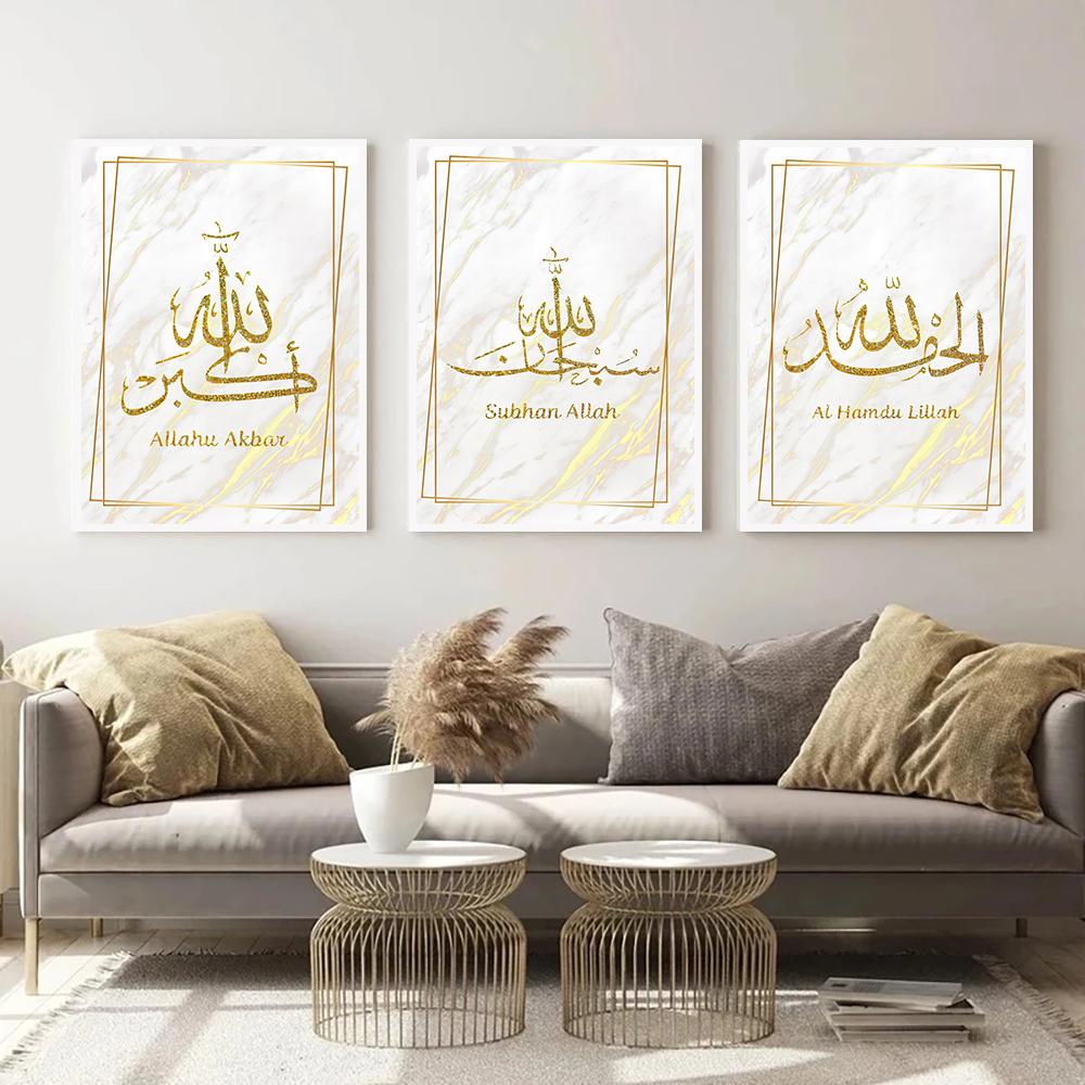 Арабский золотой шрифт Плакат Исламская культура Стиль Декоративная живопись Гостиная Настенная живопись Печать Современный домашний декор Картина на холсте Без рамки
