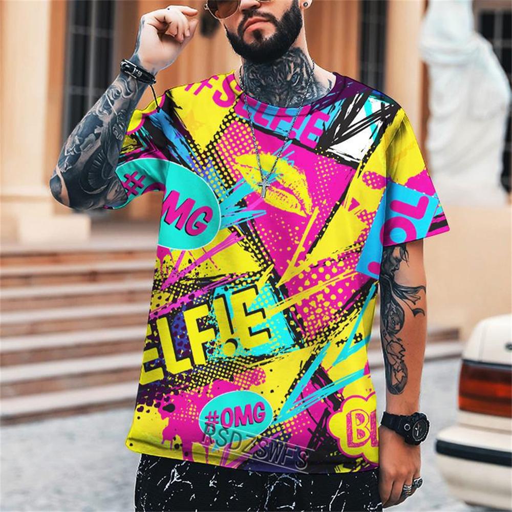 Новая забавная футболка с граффити-стрит с 3D-принтом, мужская летняя крутая футболка в стиле хип-хоп, повседневная молодежная популярная футболка с коротким рукавом