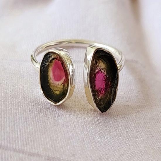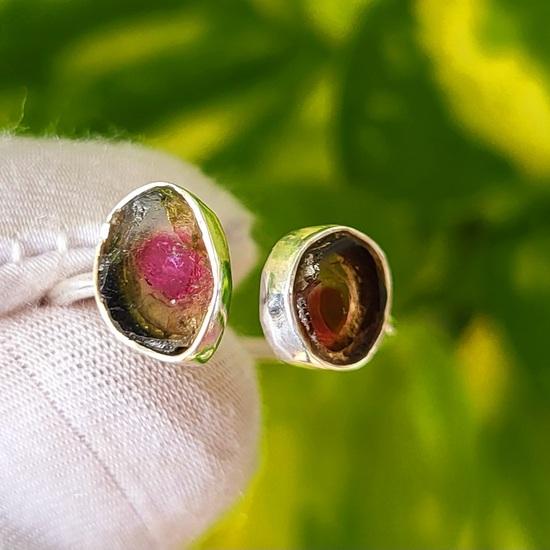 Кольцо из натурального арбузного необработанного турмалина из стерлингового серебра 925 пробы 7,5 долларов США в подарок, A 45