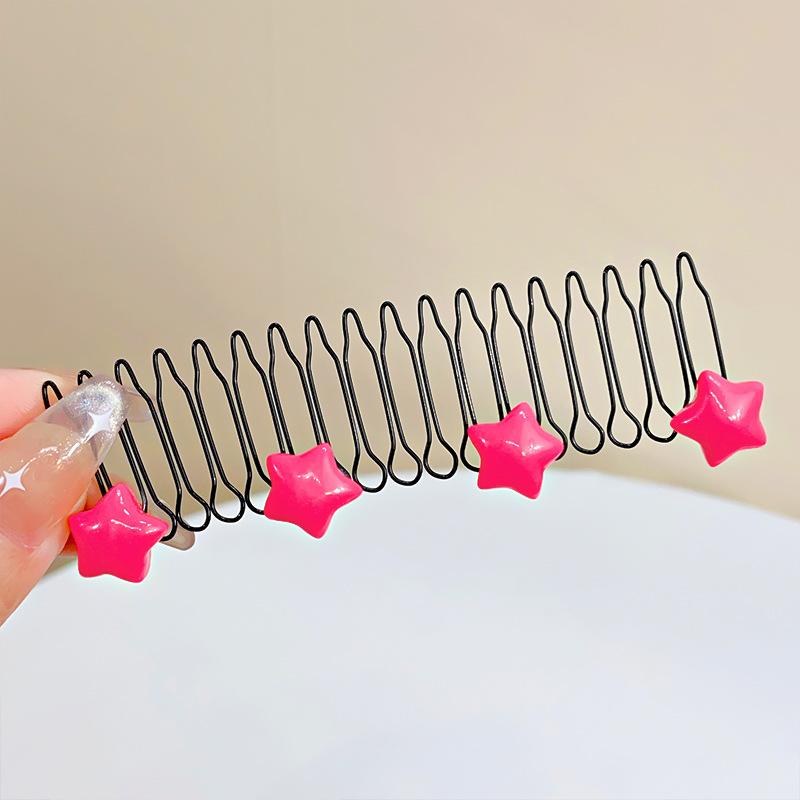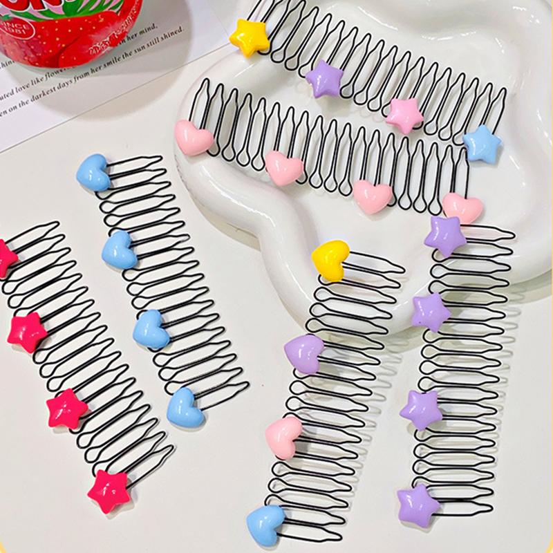 Новый милый красочный бант в форме сердца и звезды, выдвижная эластичная металлическая расческа для волос для девочек, повязка на голову с рваной отделкой волос, модные аксессуары для волос
