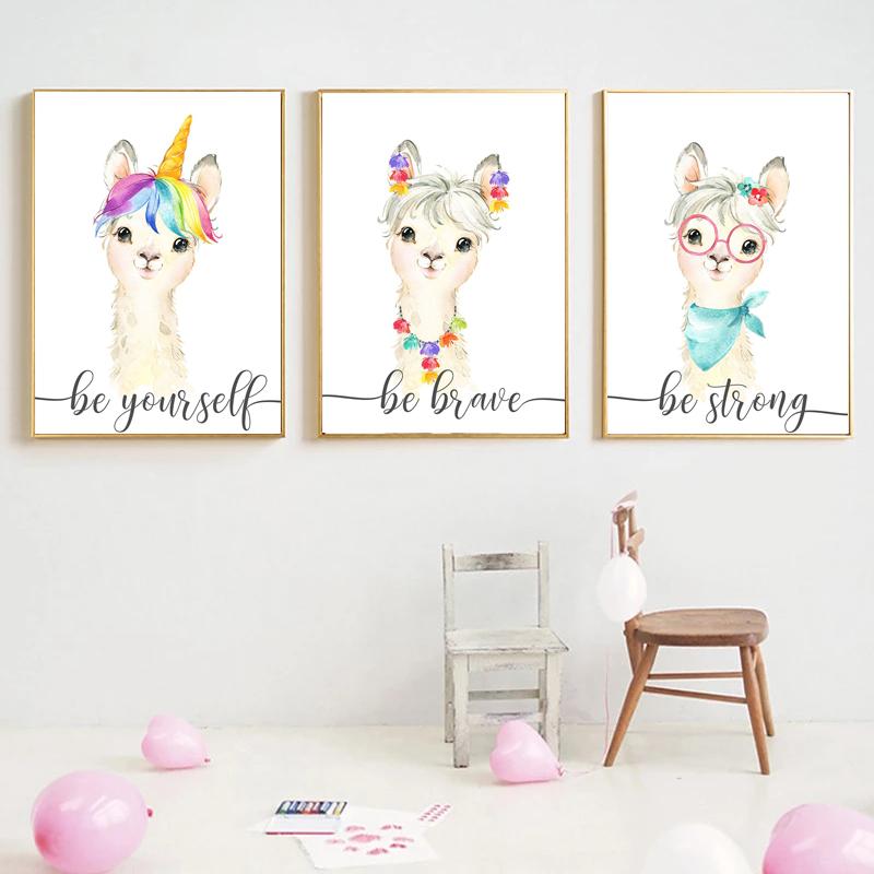 Набор для печати на стенах с изображением ламы, настенное искусство с изображением альпаки, картины на холсте, детские плакаты и принты, настенные картины для детской комнаты, декор для детской комнаты без рамки