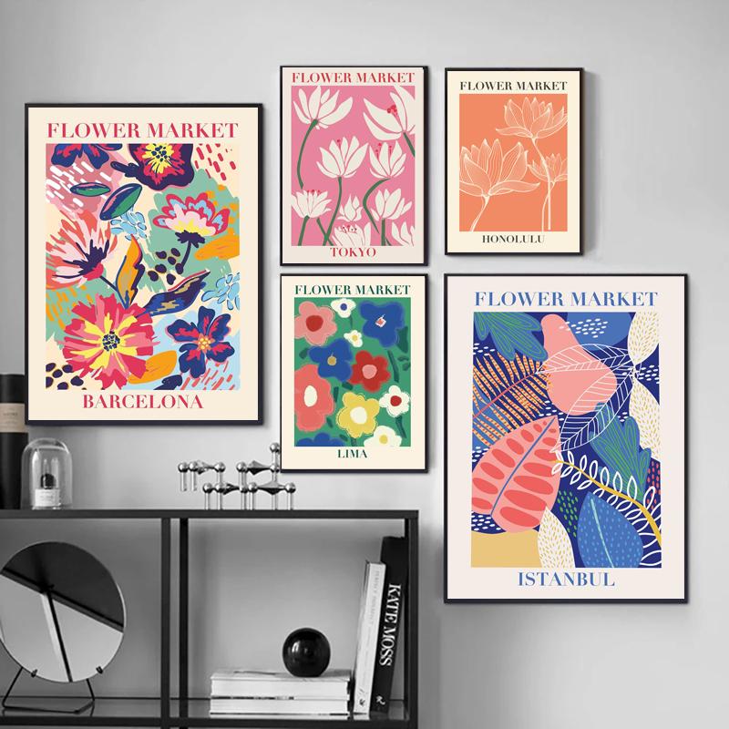 Абстрактные красочные винтажные цветы настенная живопись холст скандинавские постеры и принты настенные картины для декора гостиной без рамки