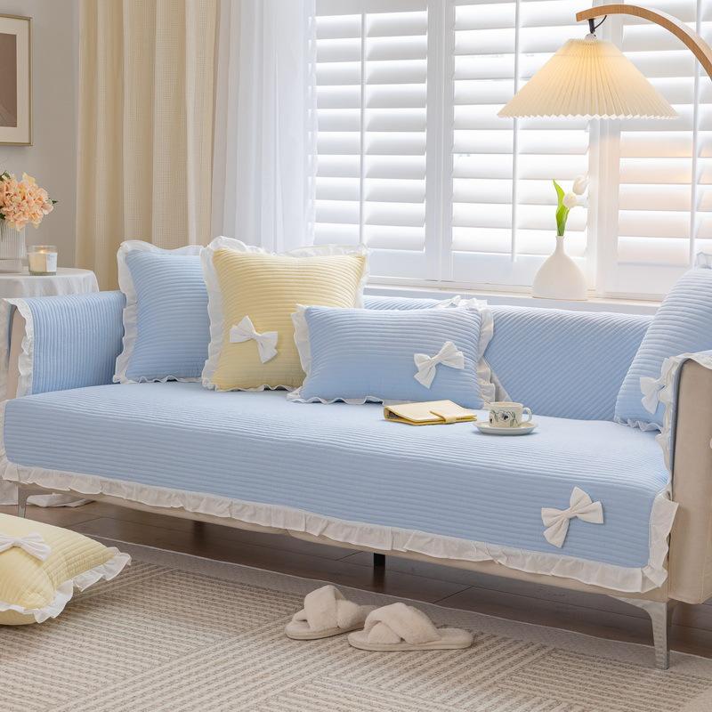 Размер диванных чехлов, которые вы выберете, должен быть на 20 ~ 30 см больше, чем фактический размер дивана. Остаточную часть можно повесить вниз, чтобы защитить боковую часть дивана или заправить под диван, чтобы предотвратить скольжение.