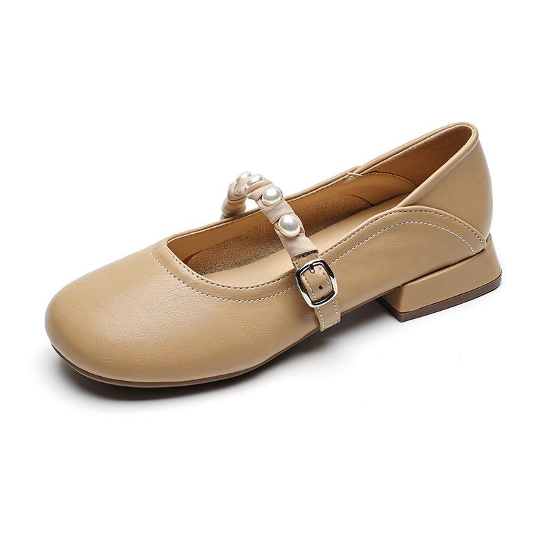 Туфли Мэри Джейн для женщин с круглым носком, французская линия с жемчужными лодочками для женщин, толстый каблук