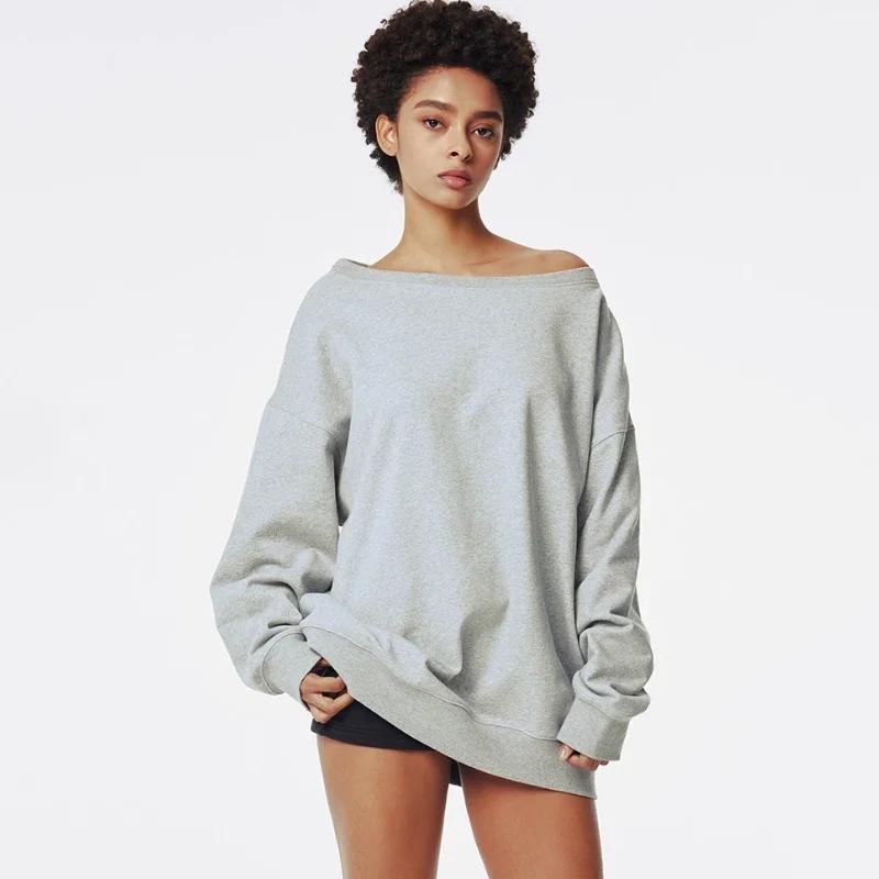 Y2k Толстовка Женская Осенняя Харадзюку Ретро Топы Пуловер Свободные Толстовки С Открытыми Плечами Мода Уличная Одежда