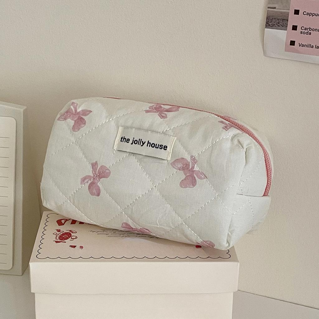 Милый бант с цветочным узором, хлопковая стеганая сумка для карандашей для девочек, мягкая хлопковая сумка большой вместимости для канцелярских принадлежностей, возвращающая в школу