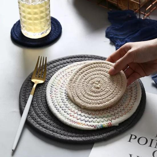 Эта тканая подставка, изготовленная из высококачественного хлопкового материала, мягкая, толстая и хорошо впитывающая влагу, что делает ее идеальным дополнением к вашему обеденному столу..