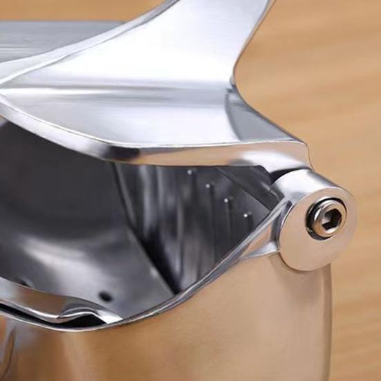 Соковыжималка изготовлена из высококачественного алюминиевого сплава с пищевым покрытием.. По сравнению с настоящей соковыжималкой для фруктов из нержавеющей стали, эта ручная соковыжималка более прочная и долговечная.
