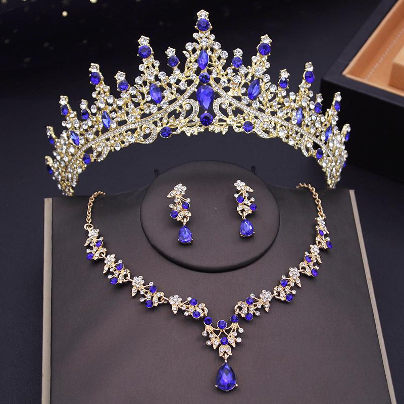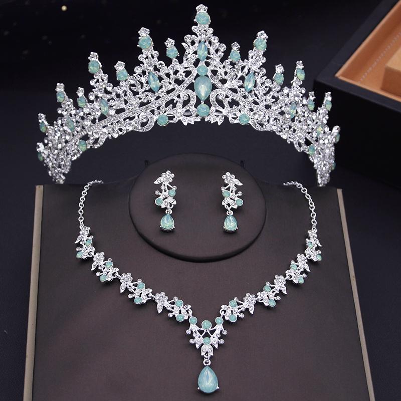 Женские свадебные комплекты ювелирных изделий в виде короны, свадебные диадемы, ожерелье, серьги, комплект украшений для девочек, выпускной бал, комплект ювелирных изделий для невесты, аксессуары