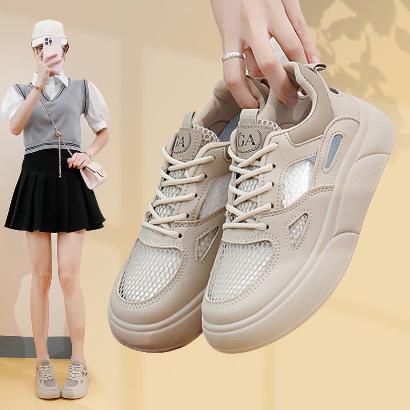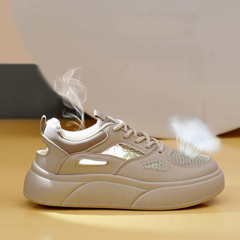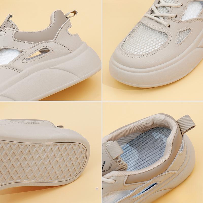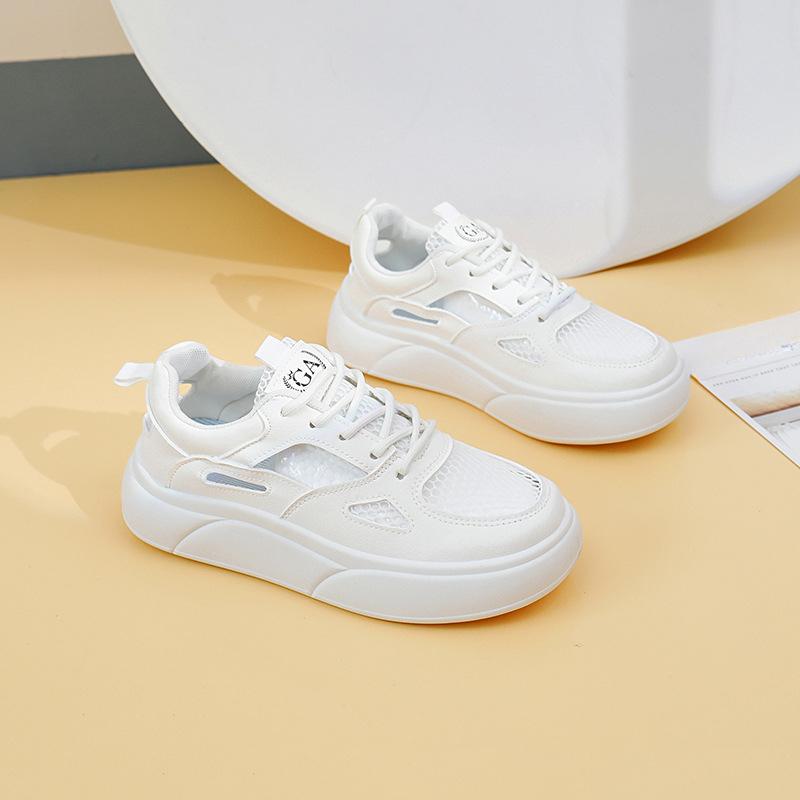 Летние новые корейские дышащие белые туфли с полыми кедами для отдыха на толстой подошве универсальные женские туфли-буфы
