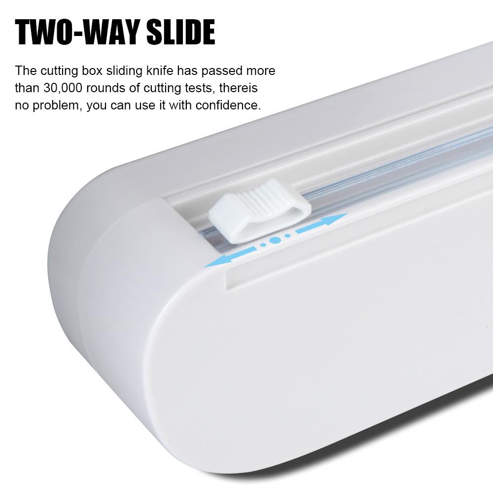 Двунаправленная кнопка слайд-резака, вытащите нужное количество пленки, вы можете разрезать ее слева направо или справа налево плавно без использования опасного лезвия ножовки или ножниц.