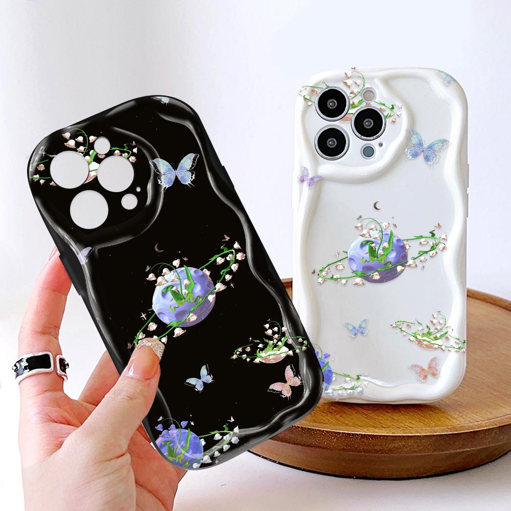 Для Honor 90 Lite P30 Pro Infinix Hot 30 40 40i 40 Pro Smart 8 Pro Vivo V29e V30e Цветы Кремовый Текстурный Чехол Волнистый Край Мягкий Силиконовый Чехол Для Телефона