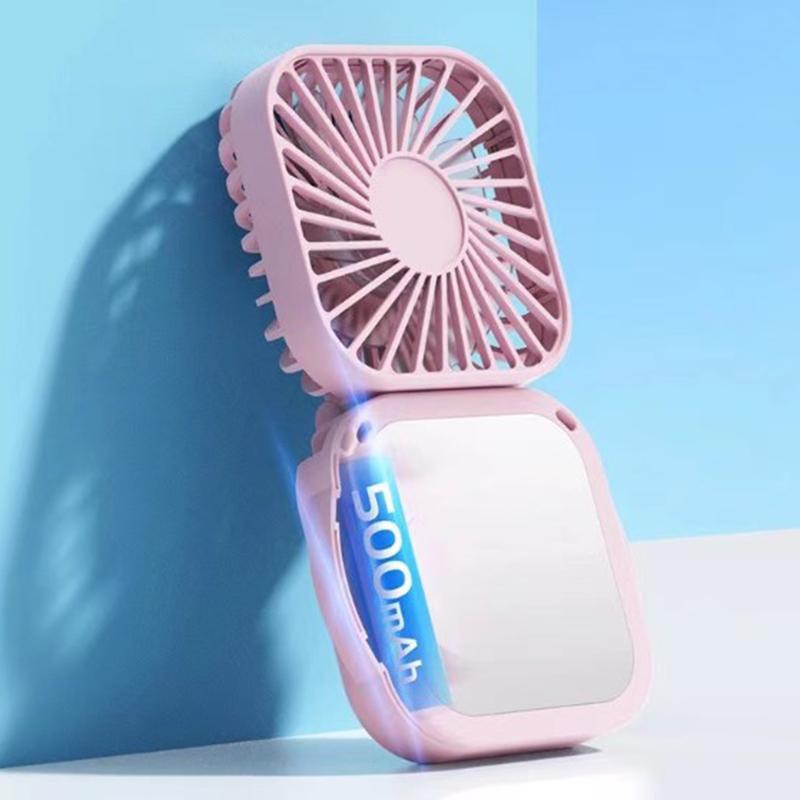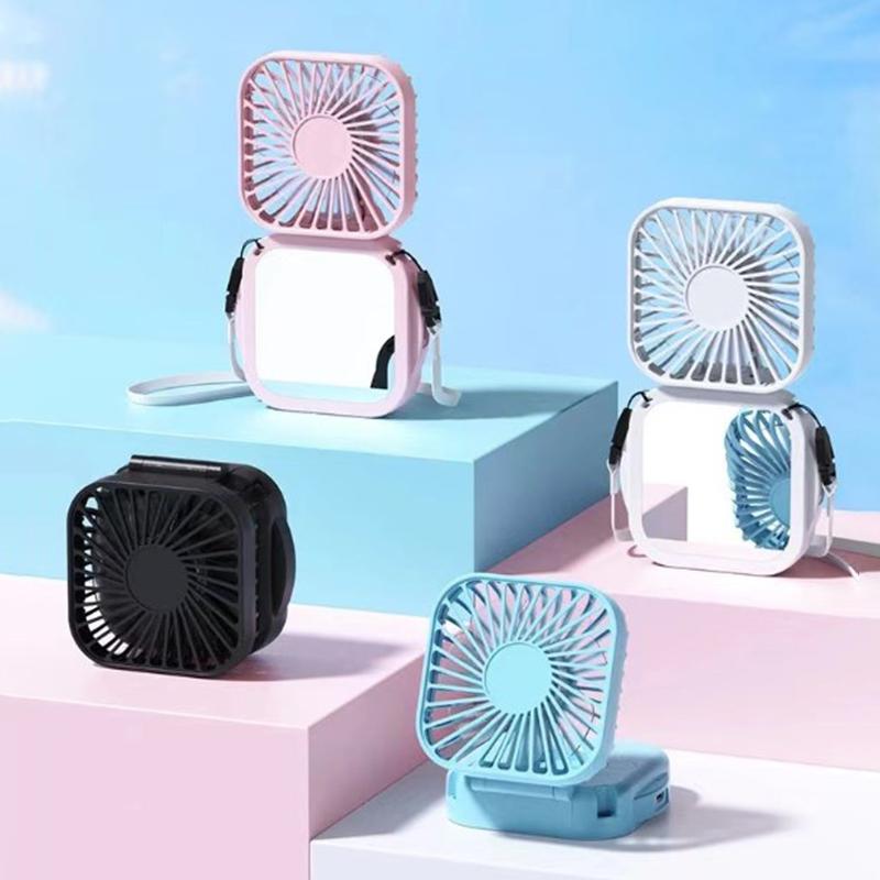 Летний удобный ремешок USB перезаряжаемый небольшой вентилятор с зеркалом для макияжа бесшумный ручной складной настольный многодиапазонный электрический вентилятор