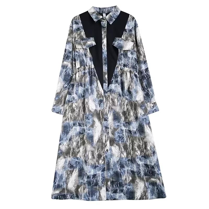 Xitao Свободное платье-рубашка в стиле пэчворк с принтом, повседневное однобортное женское платье на шнурке, новое осеннее простое платье в стиле темперамент DMJ4175