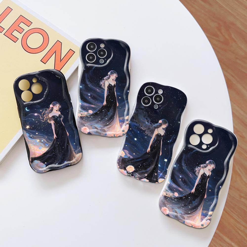 Для OPPO A17 A18 A38 A58 A98 Reno7 Z 8Z 8T 11F 11 Pro Realme 12 Lite 12 Pro C30 Starry Sky Black Skirt Girl Cream Texture Мягкий силиконовый чехол для телефона