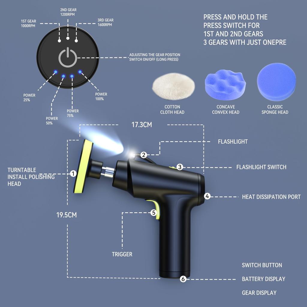 Электрическая полировальная машина 6 в 1, машина для ухода за автомобилем, вощение, 3-скоростная регулируемая беспроводная полировальная машина, многофункциональный очиститель автомобиля