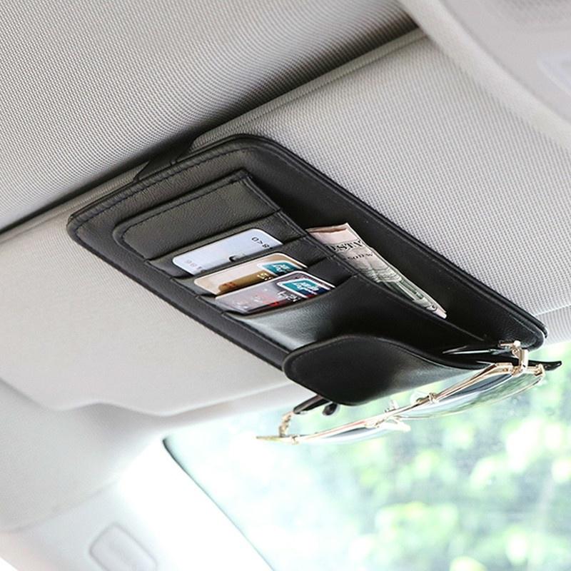 Солнцезащитный козырек Многофункциональный автомобильный держатель для карточек из искусственной кожи, органайзер для ручек для хранения очков, автомобильная подвесная сумка Aut — купить товар онлайн с бесплатной доставкой по всему миру!