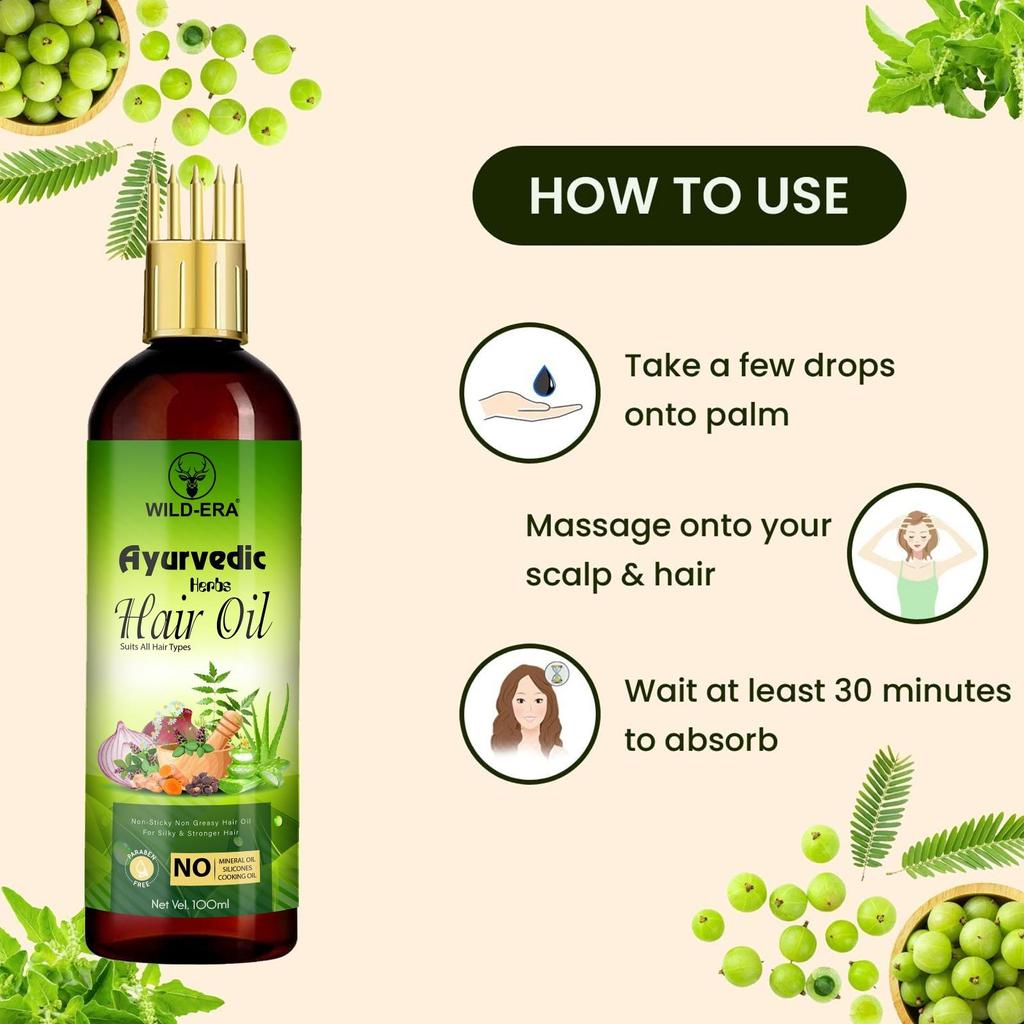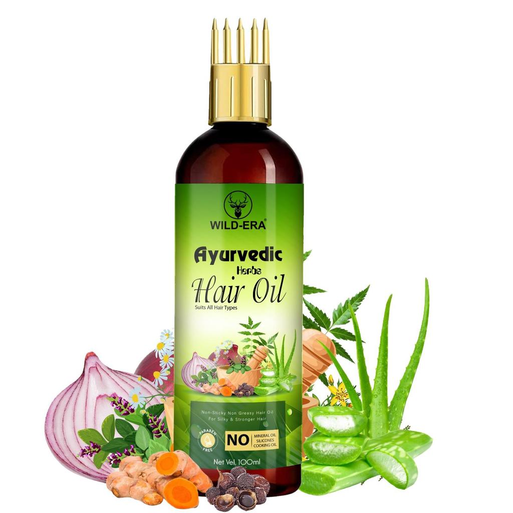 WILDERA 100% аюрведическое масло против выпадения волос | Масло для роста волос | Уменьшает выпадение волос | 21 натуральный ингредиент | Растит новые волосы с аюрведическим маслом - 100 мл