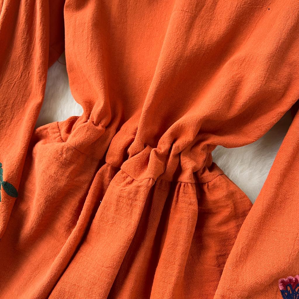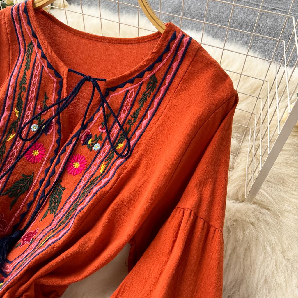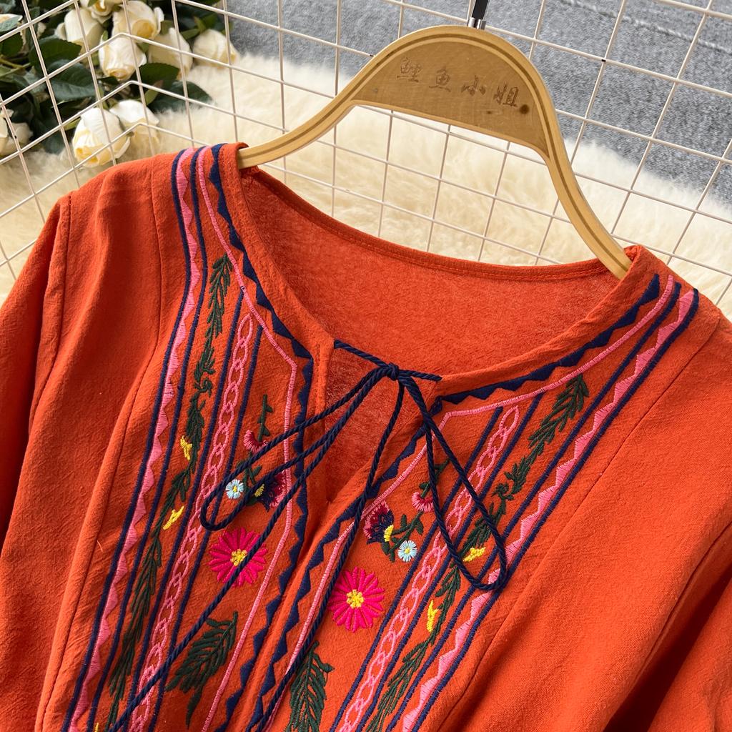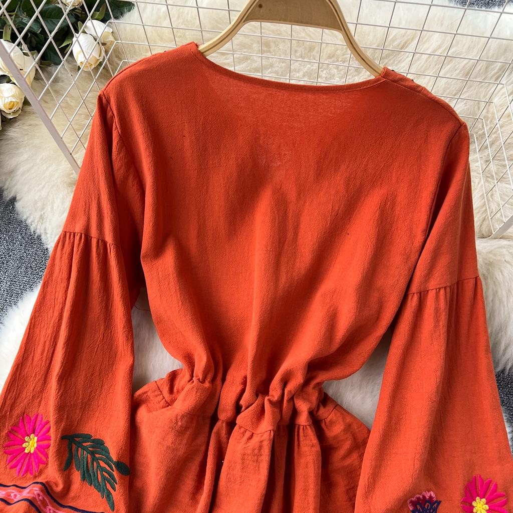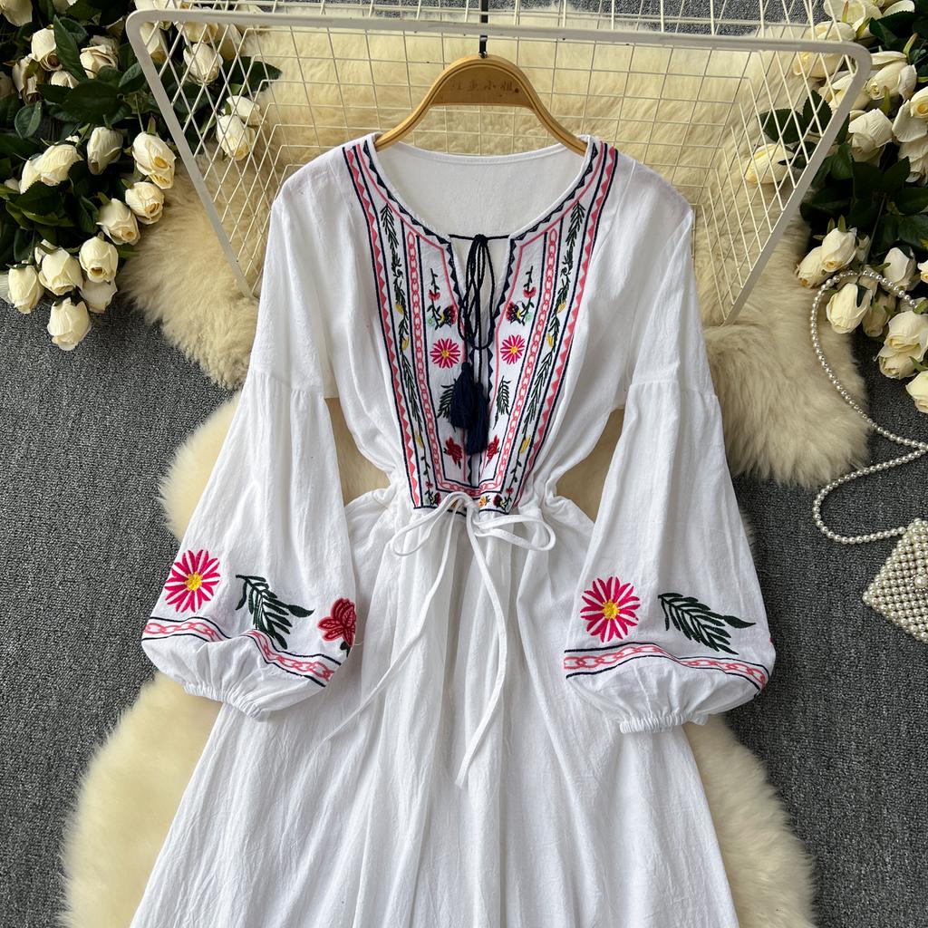 Винтажное элегантное платье с V-образным вырезом и вышивкой, рукавами-фонариками, повседневное платье-трапеция для женщин, модное летнее весеннее платье-платье