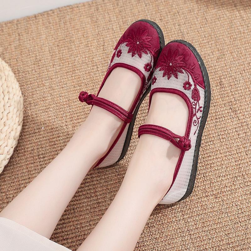 Старая пекинская тканевая обувь, мамина обувь с сеткой, летняя дышащая обувь из сетчатой ткани в старинном стиле с вышивкой