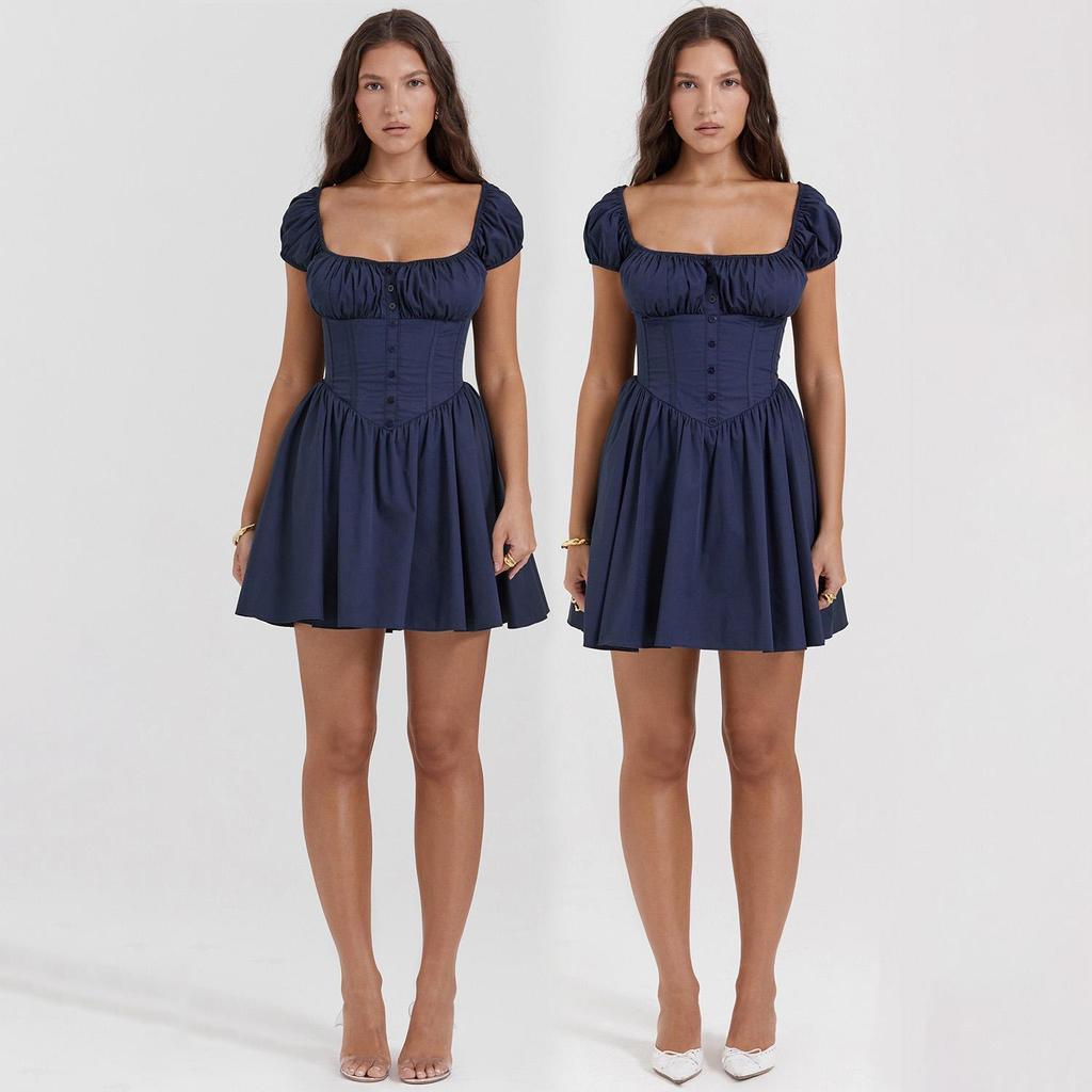 Летнее женское модное однотонное плиссированное платье длиной до колена с квадратным вырезом