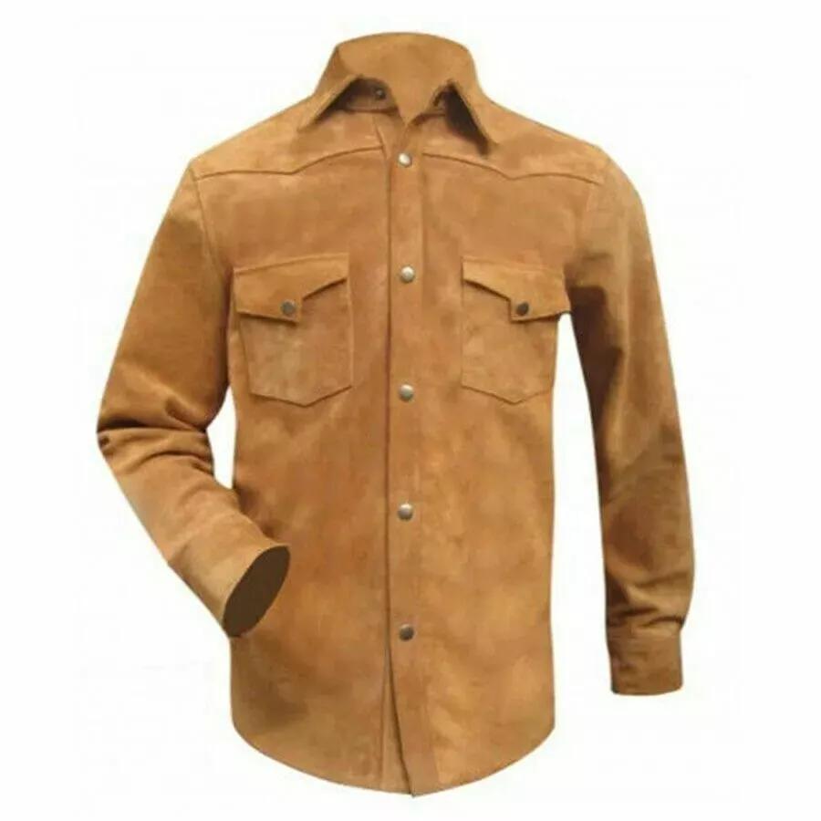 Мужская коричневая рубашка из натуральной мягкой замши, повседневная рубашка из чистой овчины ручной работы