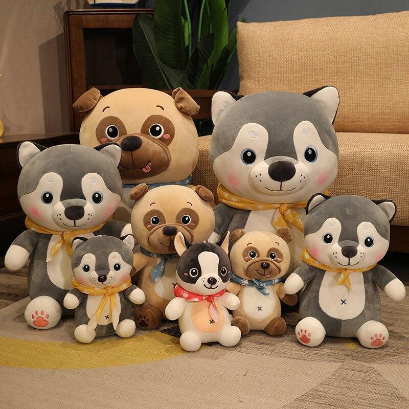 Милые хаски, бульдог, пекинес, плюшевые игрушки, мультяшные куклы, мягкие кавайные игрушки для собак для детей, подарок на день рождения