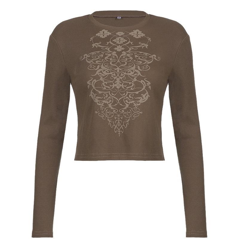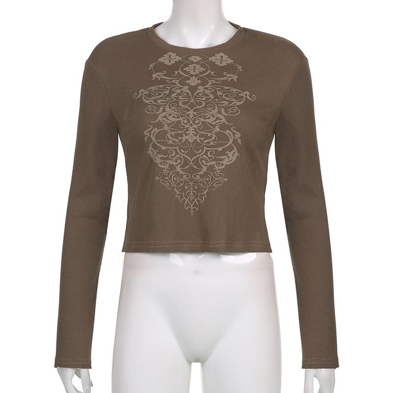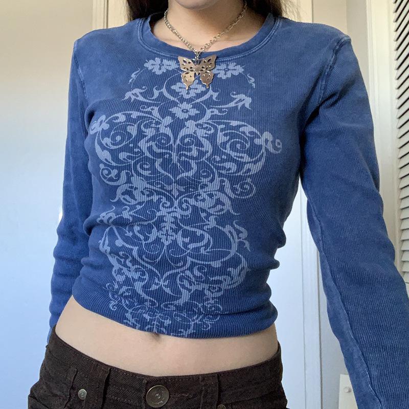 Женская футболка в стиле ретро с принтом, круглым вырезом и длинными рукавами, облегающая, на осень и зиму 2020 года