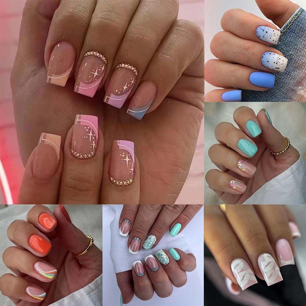Длинные квадратные накладные ногти Nials White Lips Starbursts Press on Nails New False Nails Women Girls