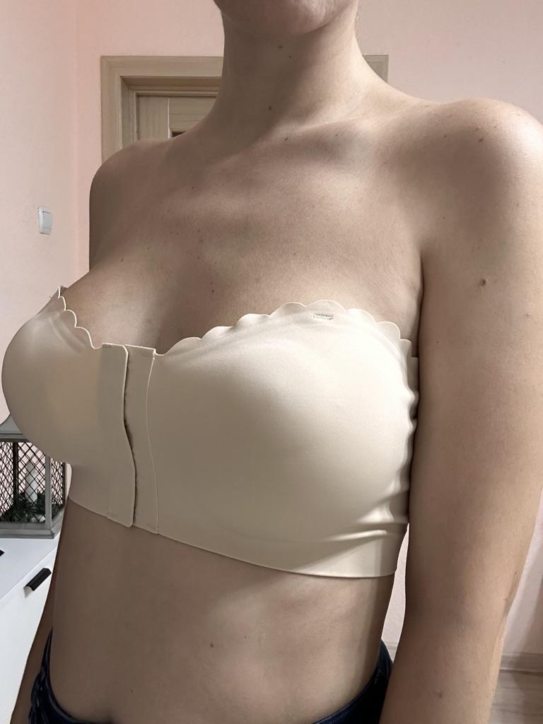 Этот бюстгальтер без шлеек стал настоящей находкой! Сначала я сомневалась, что он сможет держаться на месте без поддержки, но к моему удивлению, он прекрасно справляется со своей задачей. Чашки имеют хорошую форму и создают естественный, аккуратный силуэт, что идеально подходит для платьев и топов с открытыми плечами.👍 Силиконовые вставки по краям помогают бюстгальтеру надежно фиксироваться, не вызывая дискомфорта. Я носила его целый день, и он не сползал и не сжимал грудь. Материал мягкий и приятный на ощупь, не раздражает кожу.😍 Качество превосходное, особенно за такую цену. Теперь это моя незаменимая вещь для особых случаев!🥰