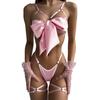 1 комплект женский бюстгальтер трусики комплект с кольцом на бедре бант декор без рукавов спинка глубокий вырез