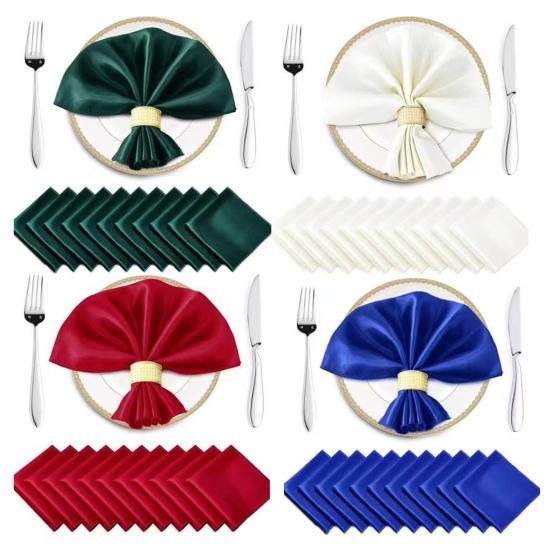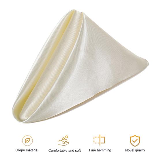 Роскошный атласный материал: Салфетки изготовлены из высококачественного атласа, имеют шелковистую, блестящую текстуру, которая излучает элегантность.. Мягкое и приятное на ощупь покрытие улучшит качество обслуживания, гарантируя вашим гостям первоклассные ощущения.