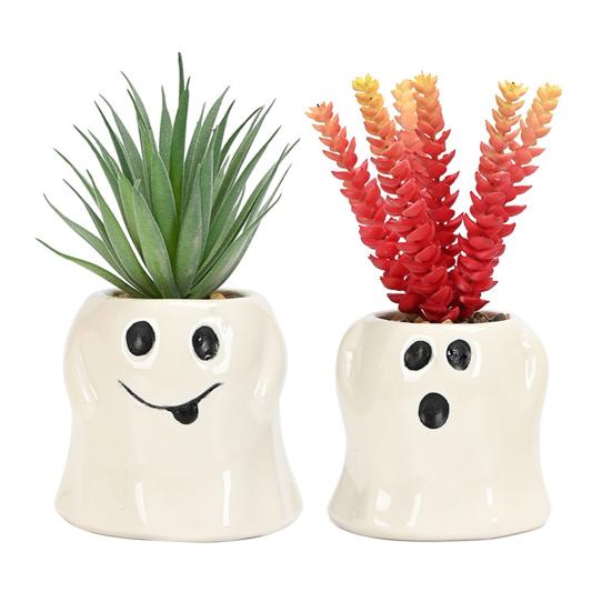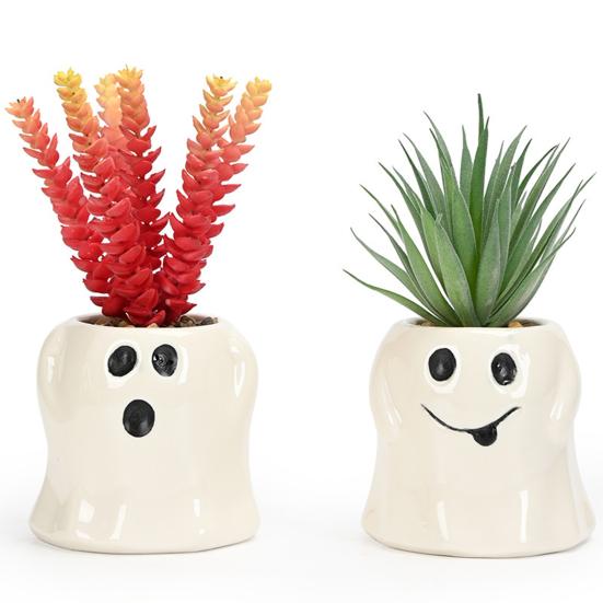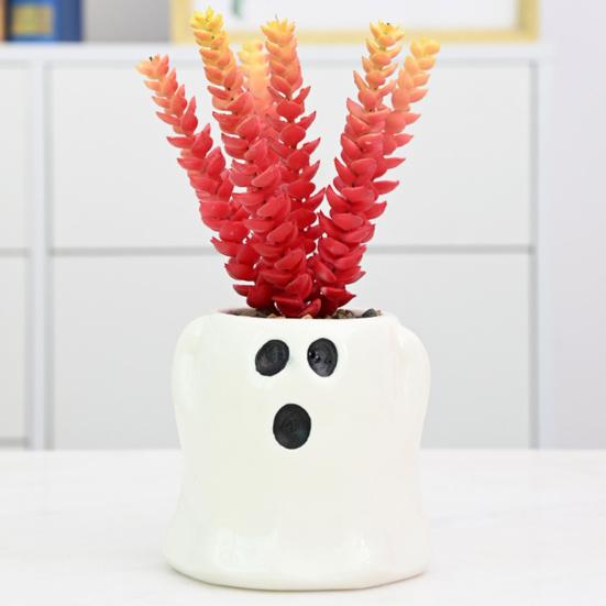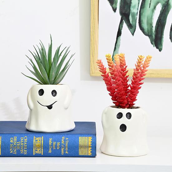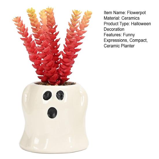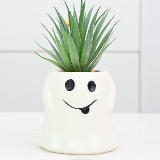 Эта прочная ваза, изготовленная из высококачественной керамики, идеально подходит для демонстрации растений или хранения сладостей.. Его небольшой и изысканный дизайн идеально подходит для суккулентов и небольших горшечных растений.. Подарите зелень с помощью нашего цветочного горшка Ghost — уникального подарка как любителям растений, так и поклонникам Хэллоуина.