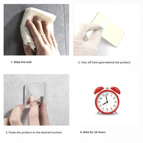 Просто снимите клейкую наклейку с обратной стороны и надежно прикрепите крючок к стене или двери без необходимости использования сложных инструментов или крепежа для быстрой и легкой установки.