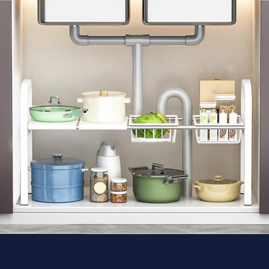 Эта прочная стойка, устойчивая к коррозии и ржавчине, может похвастаться высокой несущей способностью.. Выдвижная конструкция оптимизирует пространство под раковиной, повышая эффективность хранения.. Съемные полки и корзины обеспечивают гибкость, позволяя избегать препятствий, таких как канализационные трубы, и расширяя возможности использования.