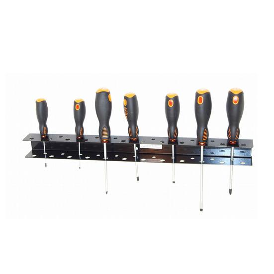 Наш настенный держатель с 23 отверстиями сверху и снизу вмещает до 23 отверток, напильников или различных инструментов, что делает его идеальным выбором для гаражей, мастерских и верстаков.