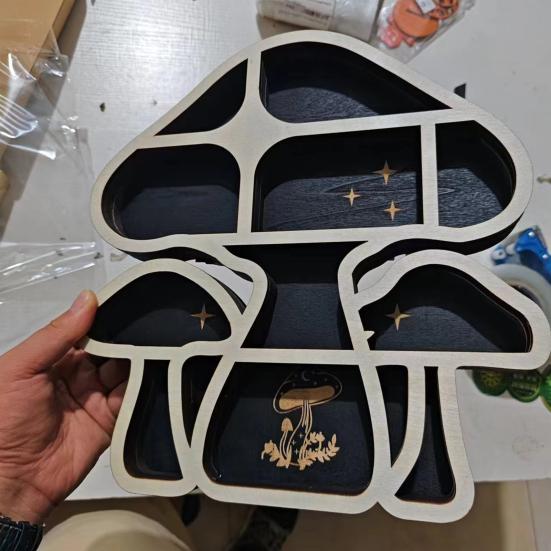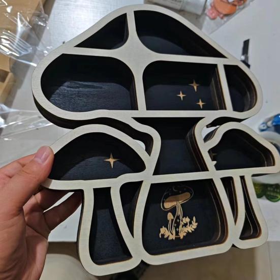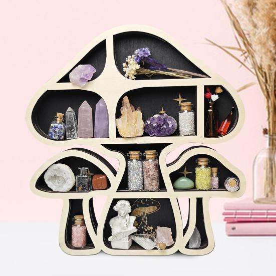 Украсьте свой дом этой практичной деревянной полкой в форме гриба.. Изготовленная из высококачественного самшита, эта плавающая полка имеет несколько отделений, идеально подходящих для демонстрации кристаллов, лечебных камней, свечей и многого другого.