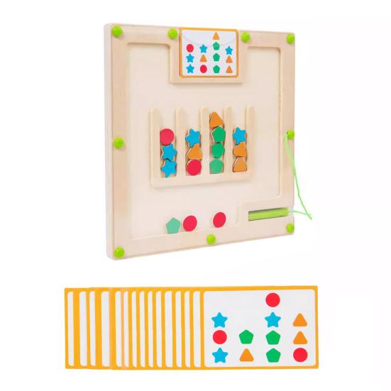 Изготовленный из натуральной твердой древесины, наш игрушечный лабиринт поставляется с 15 двухсторонними карточками, которые идеально помещаются в центре лабиринта.. Наблюдайте, как ваш ребенок получает удовольствие от увлекательного процесса сортировки ярких цветов и забавных фигур, превращая обучение в радостное занятие.