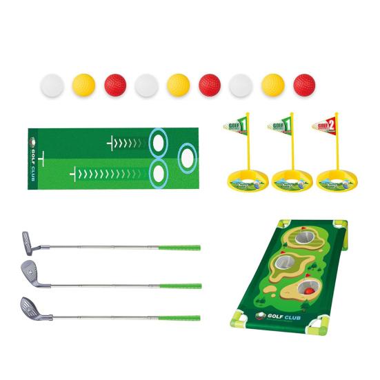 Комплексный набор: Развивайте страсть к гольфу с помощью полного набора, включающего доску для гольфа «корнхол», коврик для патта, мячи, клюшки, площадки для ударов и лунки, обеспечивая детям радостный и познавательный опыт.