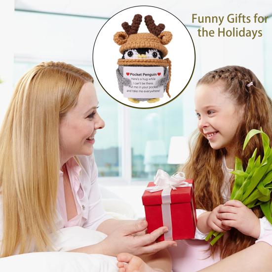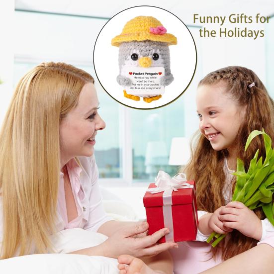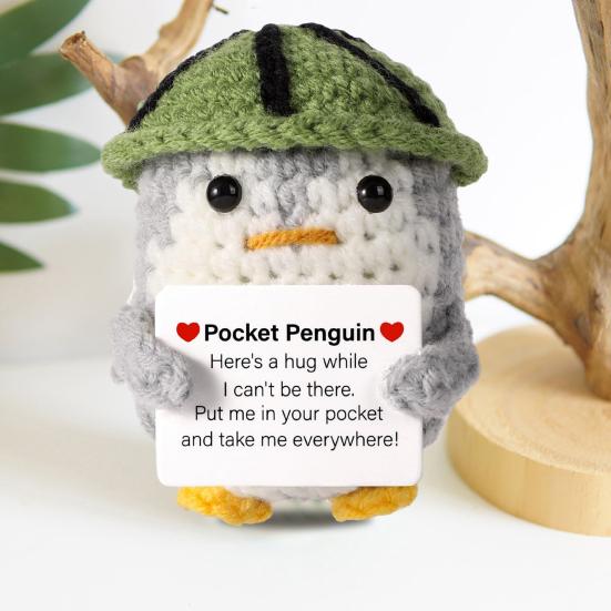 Поощрение использования карт: К каждой вязаной кукле-пингвину прилагается поздравительная открытка, которая добавляет индивидуальности и передает получателю тепло и силу, что делает ее подарком, от которого веет теплом и теплом.