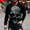 Футболка с длинным рукавом и круглым вырезом больших размеров, мужская одежда, ретро-футболка с длинным рукавом, 3D-принт с черепом, длинная футболка для мужчин, уличная одежда