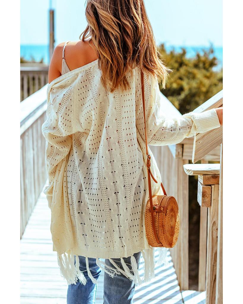 Azura Exchange Бежевый кардиган с кисточками и косами - 100% акрил