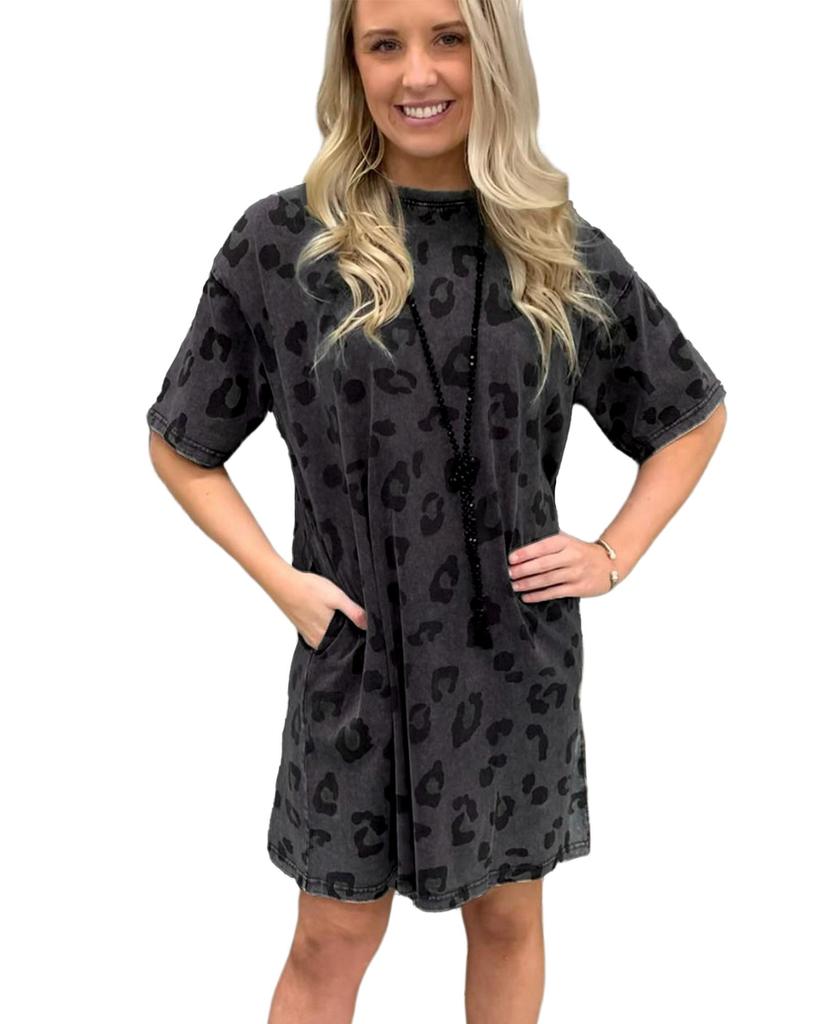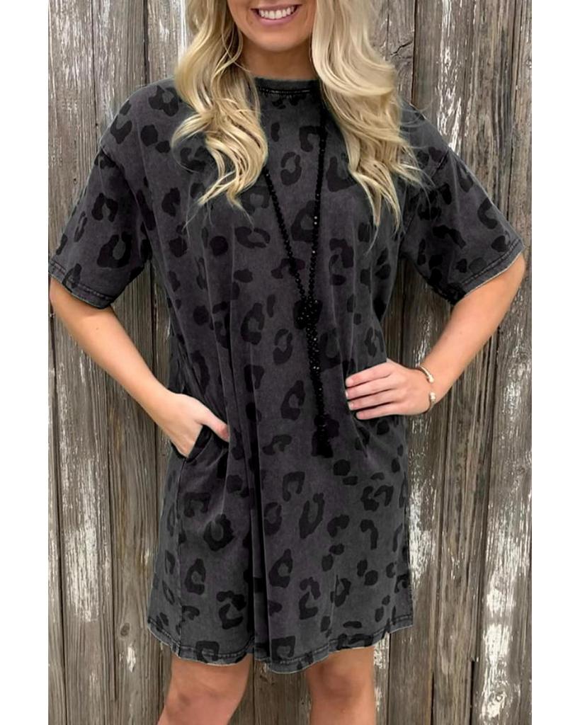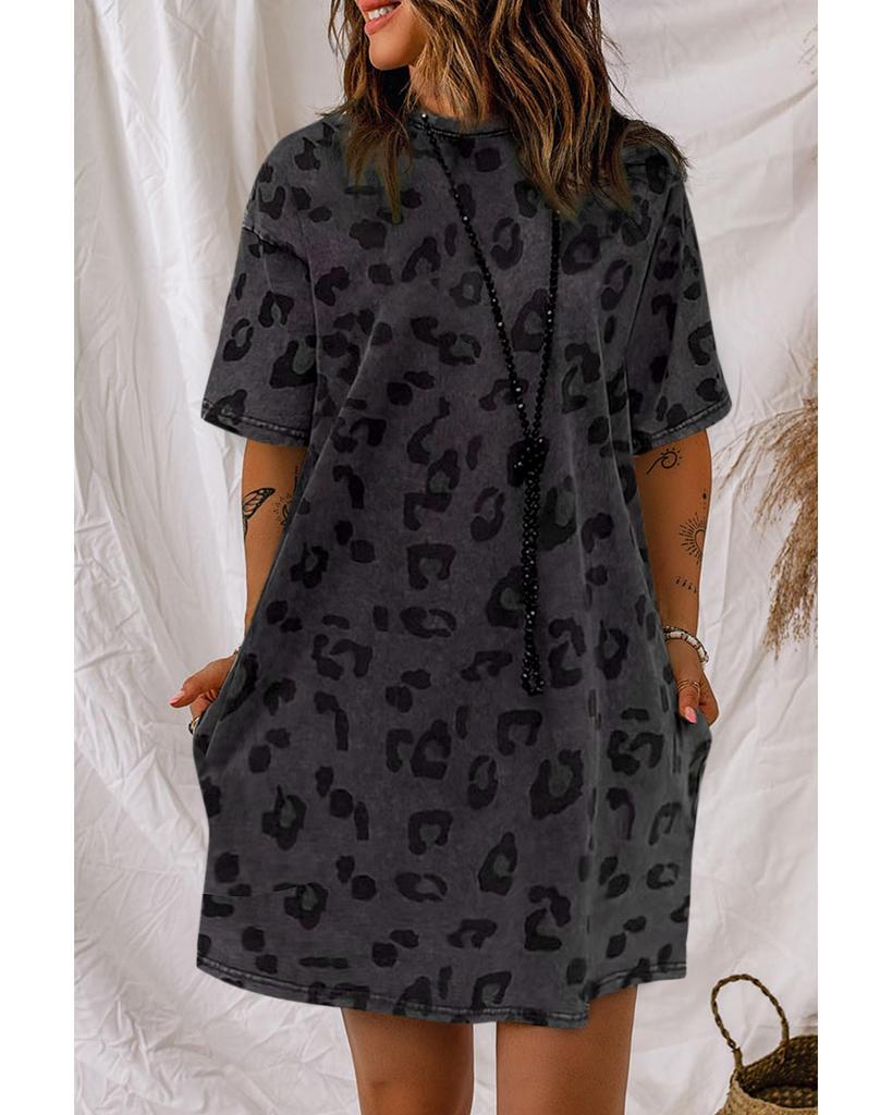 Azura Exchange Платье-футболка с леопардовым принтом и карманами